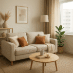 Dobierając tekstylia, postawmy na kontrasty – gładkie sofy można ozdobić kolorowymi poszewkami, a surowe drewniane stołki zwieńczyć miękkimi podkładkami. Dzięki temu wnętrze zyska przytulny charakter i wyrazistość.