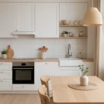 - ciepłe beże i karmel – wprowadzają przytulność i równowagę;