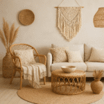 - Biel i ecru – podstawa rozjaśniająca wnętrze.