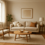 - Beże i piaski – ocieplają aranżację, bez przytłaczania, tworząc subtelne, relaksujące tło.